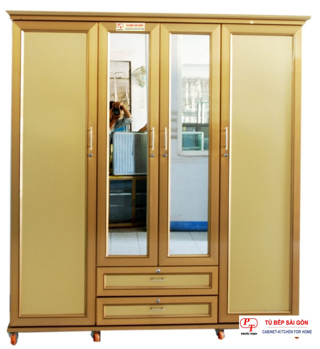 Tủ nhôm kính đựng quần áo được thiết kế với các kích thước, mẫu mã và màu sắc khác nhau, tuy nhiên các màu sắc nhôm mà khách hàng thường hay lựa chọn nhất là: nhôm màu vàng, nhôm màu trắng sữa(sơn tĩnh điện), nhôm màu giả gỗ. Hiện tại có 2 loại thiết kế dành cho Tủ quần áo nhôm kính: Tủ đựng quần áo bằng Bo tròn và Tủ đựng quần áo bằng hộp vuông. Hiện tại thì mẫu Tủ đựng quần áo bằng Hộp vuông đang được phần đông khách hàng lựa chọn vì sản phẩm này rất bền, đẹp và không chênh lệch nhiều so với Tủ đựng quần áo bằng bo nhôm. Ưu điểm, chịu được độ ẩm thấp, không lo sợ mối mọt, nắng nóng không bị vênh co nứt nẻ, đô bền cao dễ dàng vệ sinh lau chùi, chỉ cần xịt nhẹ nước rửa kính lau qua là mới như ban đầu, vận chuyển nhẹ nhàng lắp ráp nhanh gọn, thi công và lắp đặt tại nhà. Ngoài ra thì tủ đựng quần áo còn được thiết kế với các hộc chứa đồ bên dưới rộng rãi có thể chứa các loại quần áo cũ, ít sử dụng, Tủ đựng quần áo được thiết kế với các bánh xe chắc chắn bên dưới rất dễ dàng di chuyển khi dọn dẹp vệ sinh hay khi chuyển nhà.